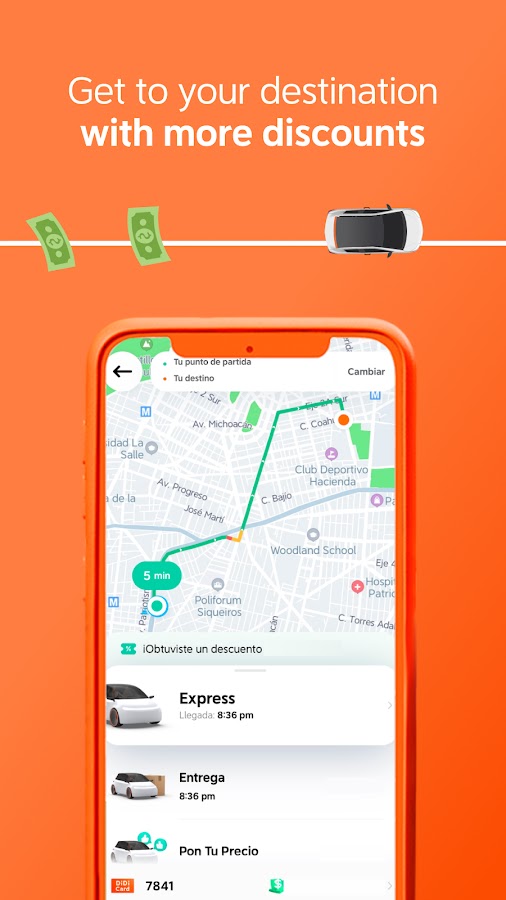 Выберите лучший способ оплаты, кредитную или дебетовую карту, через приложение или оплату наличными (доступно только в некоторых городах). DiDi предлагает купоны на скидку и эксклюзивные акции, чтобы вы могли путешествовать дешево. Наслаждайся этим!