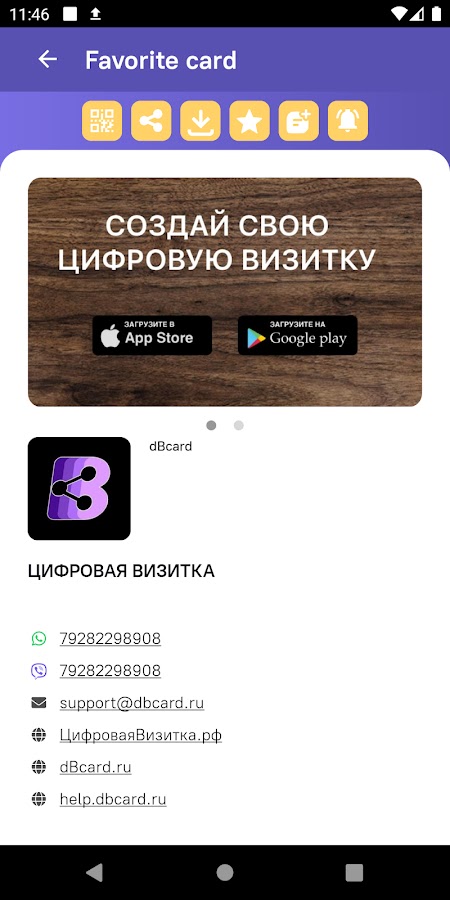 Мы стремимся сделать приложение лучше в каждой мелочи. Пишите, что стоит изменить или доработать на почту support@dbcard.ru. Приложение является клиентом сервиса www.цифроваявизитка.рф