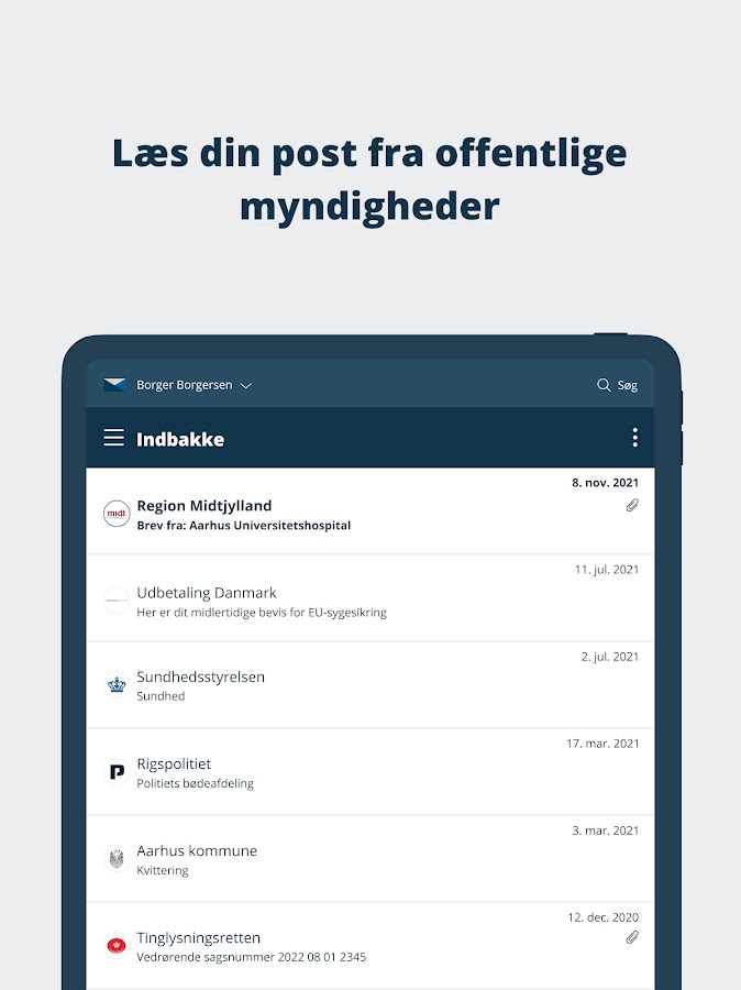 В приложении Digital Post есть только почта от органов государственной власти и учреждений. Это означает, что вы не можете видеть почту от таких компаний, как ваш банк или страховая компания.