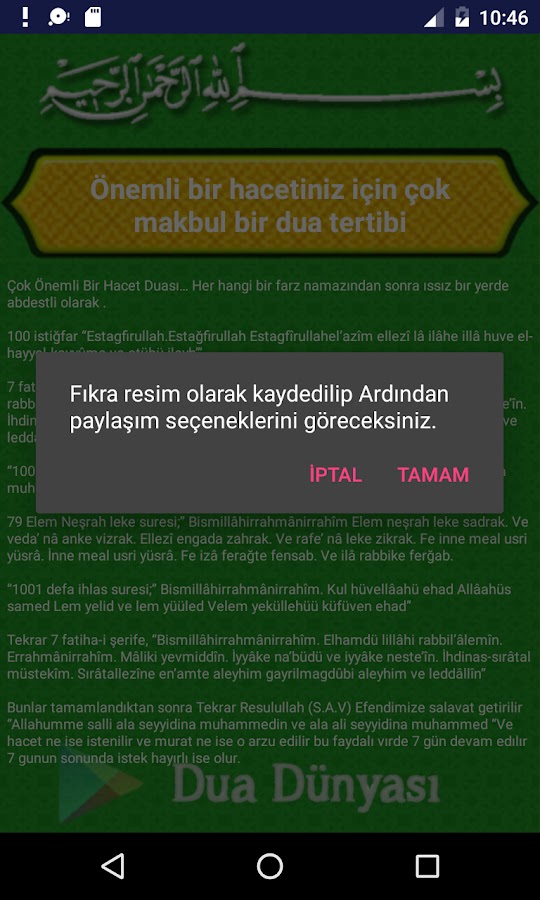 Скачайте приложение Dilek ve İstek Duaları для Android бесплатно - последняя версия (1.8.DILEK.DUA) уже доступна для установки на ваш телефон или планшет.