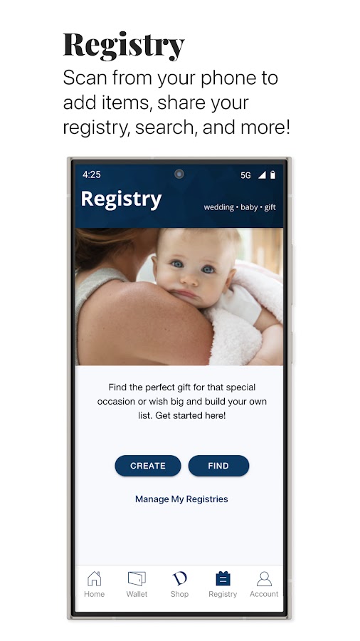 • Желаю большого! Сканируйте со своего телефона, чтобы добавить элементы, поделиться своим реестром и многое другое!
