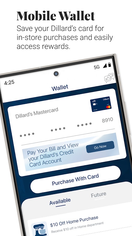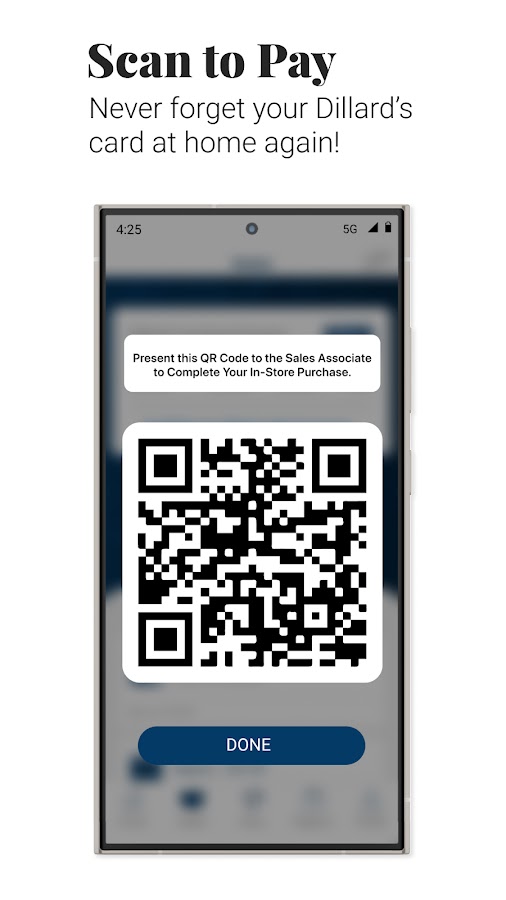 • Отсканируйте, чтобы заплатить! Совершите покупку в магазине с помощью карты Dillard, используя только свой телефон!