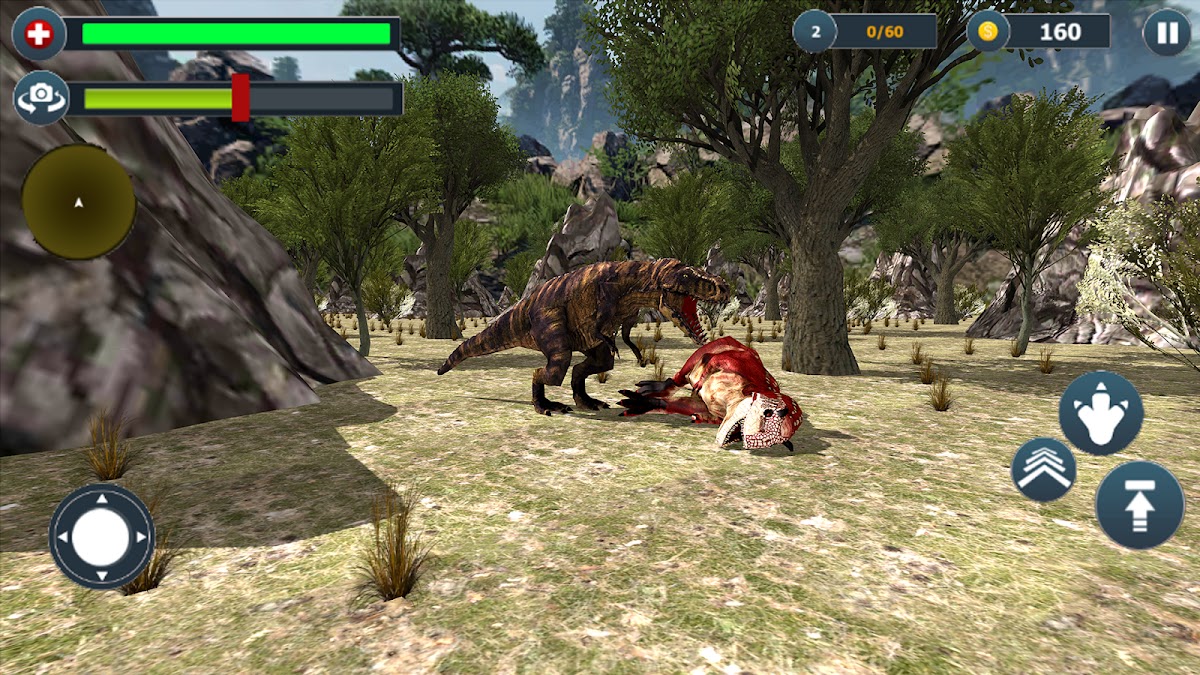 Станьте настоящим динозавром и выживайте в дикой природе как можно дольше. Увеличьте свою силу, чтобы доминировать над миром. Для выживания в пустыне поддерживайте свое здоровье и энергию, охотясь на животных джунглей. Старайтесь изо всех сил, чтобы быть выше всех в разрушении и уничтожении других существ в играх на выживание динозавров. Улучшите свою производительность, вызывая глубокие эффекты во всем, что встречается на вашем пути, действуя как настоящий участник игр с буйством динозавров. Быстро выбирайте свои цели во время вашего пребывания в настоящем симуляторе охоты на динозавров, так как у вас есть ограничения по времени, в течение которых вы должны выполнить свои цели в играх с атаками динозавров.