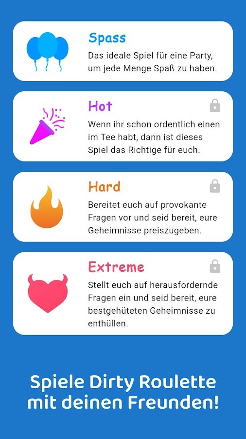 Испытайте лучшее приложение «Правда или действие» и сделайте свою следующую вечеринку незабываемой. Грязная рулетка ждет вас!