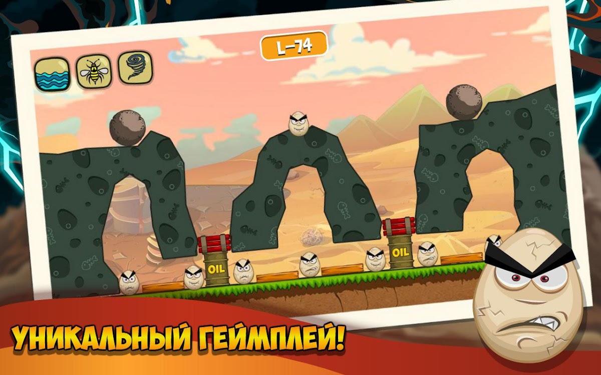 Создавайте стихийные бедствия, чтобы нанести сокрушительный удар по злобным маленьким яйцам!