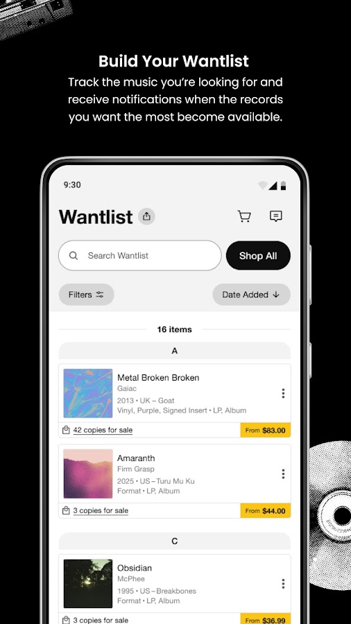 • Используйте ценовой диапазон Discogs Marketplace и историю продаж винила, компакт-дисков и кассет у вас под рукой.