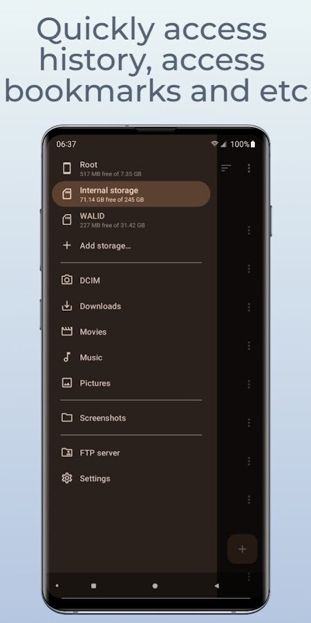 • Быстрый доступ к истории, доступ к закладкам или поиск любого файла