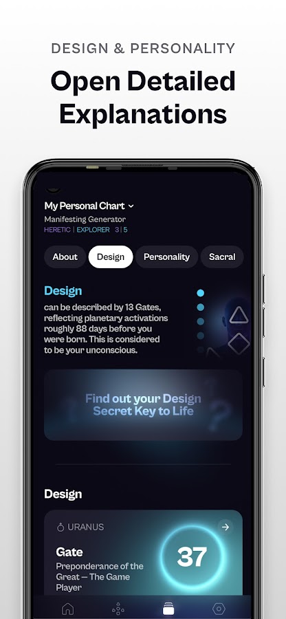 Раскройте космические секреты «Дизайна человека» с помощью «HD Human Design». Загрузите приложение прямо сейчас и отправляйтесь в трансформирующее путешествие самопознания и личностного роста.