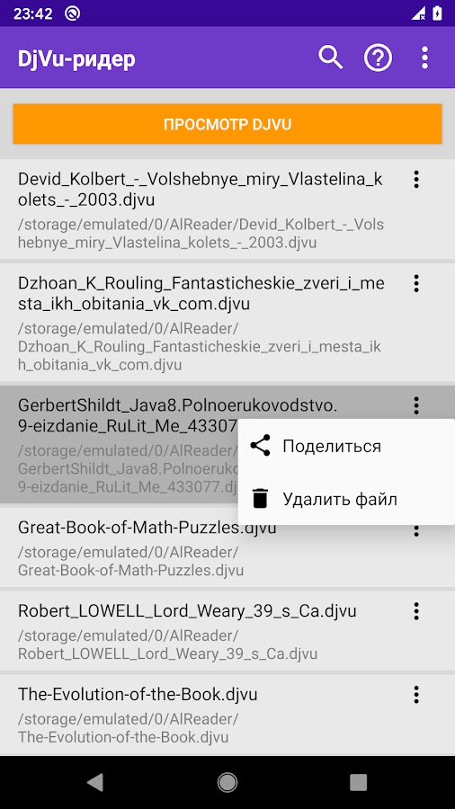 🗂️ Автоматический поиск всех DjVu-файлов на устройстве с настройкой папок сканирования;