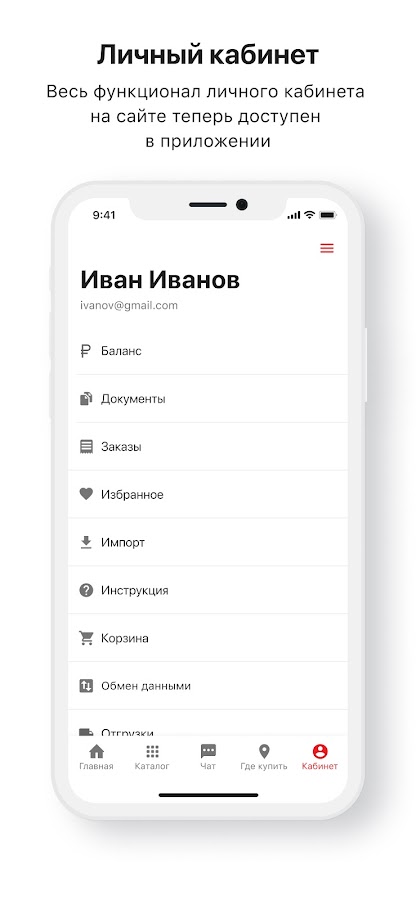 Взаимодействие. Получайте оповещения о появлении новых товаров в каталоге и новостях компании. Отправляйте обратную связь о работе с приложением.
