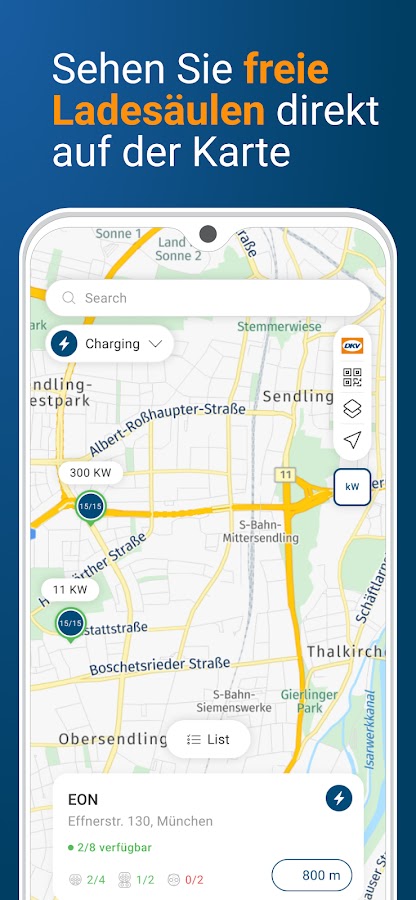 Интеграция нашей зарядной инфраструктуры дает вам доступ не только к более чем 66 000 заправочных станций, но и к более чем 200 000 общественных точек зарядки в нашей сети. Очень просто и всего в один клик. Интеллектуальное планирование маршрута также уникально: приложение DKV Mobility App автоматически рассчитывает лучший маршрут с оптимальными остановками для подзарядки на большие расстояния.