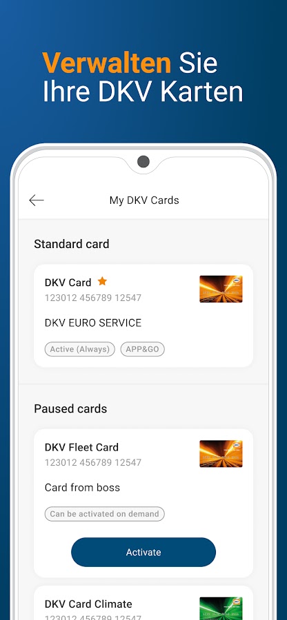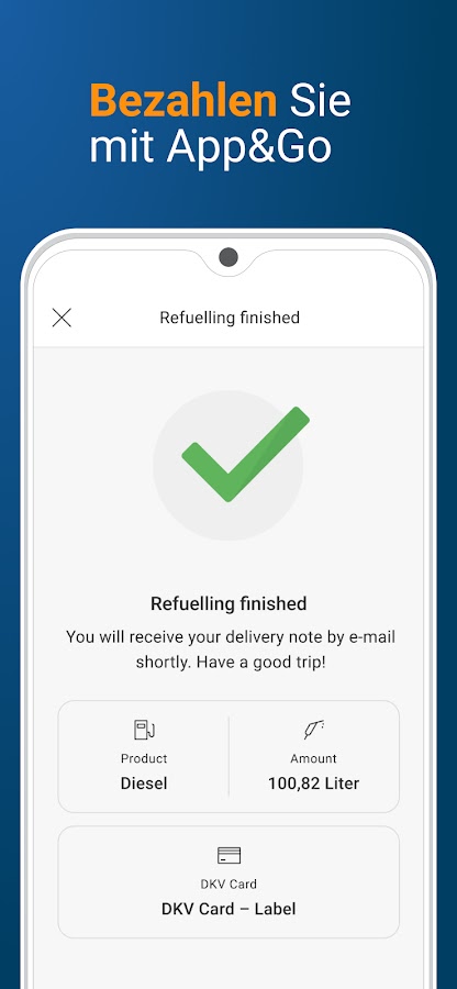 Функция APP&GO проведет вас через весь процесс заправки: от выбора ближайшей заправочной станции APP&GO до авторизации платежа — приложение DKV Mobility всегда рядом с вами и поможет вам сэкономить драгоценное время в повседневной жизни.