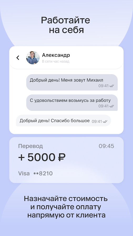 Доход полностью зависит от вас. Вы — самозанятый и самостоятельный специалист. Сами выбираете, сколько работать. Выполняйте задания за деньги и получайте оплату напрямую от клиента. Больше работаете — больше зарабатываете.