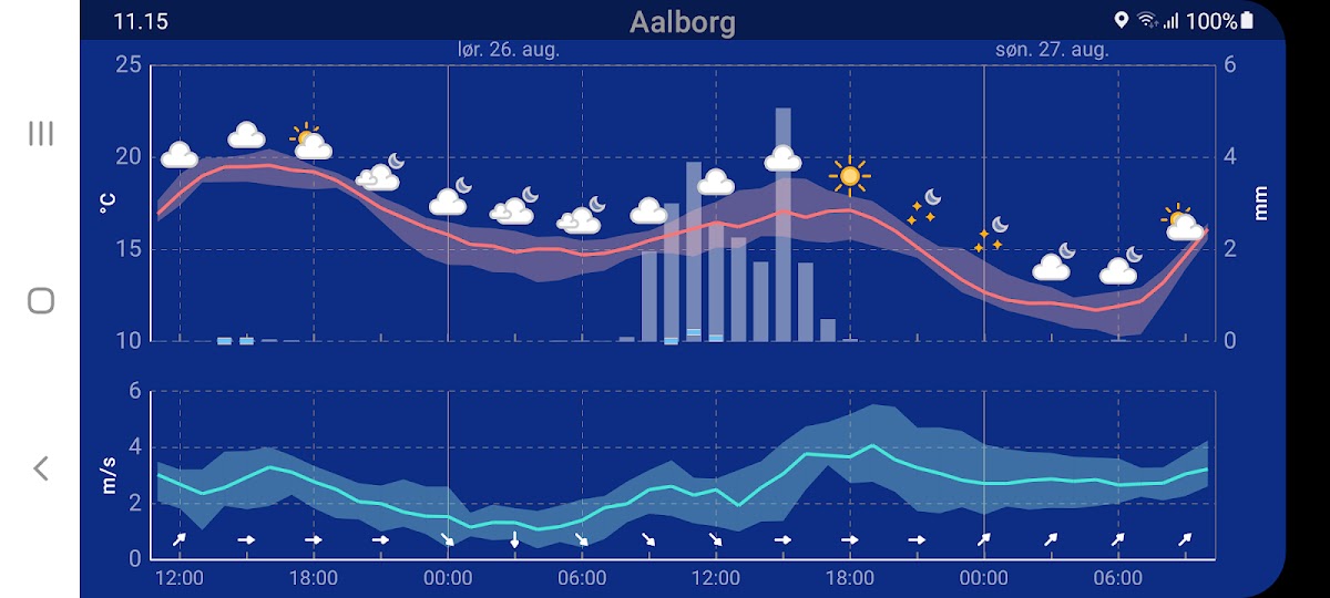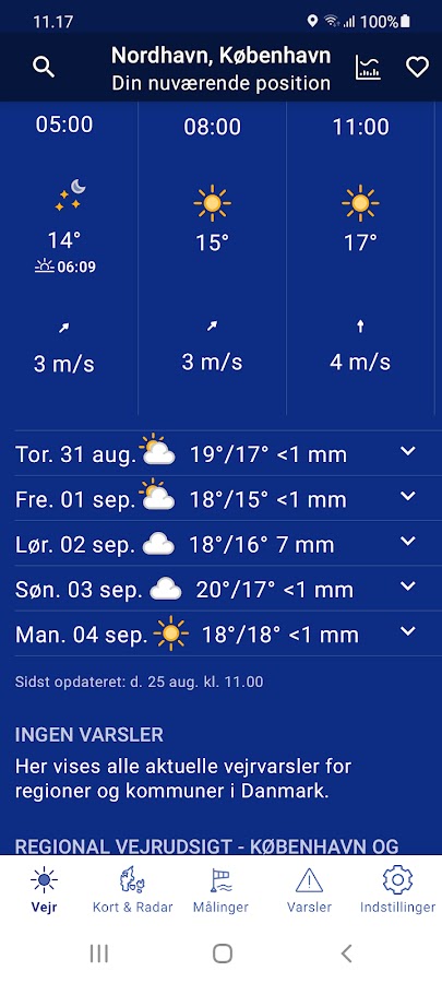 В Дании в приложении есть вся необходимая информация о погоде. На радаре можно увидеть, нужно ли загружать белье. Вы можете увидеть на спутнике, приближается ли погодная система. И вы можете просмотреть письменные прогнозы метеорологов, когда вам понадобится обзор.