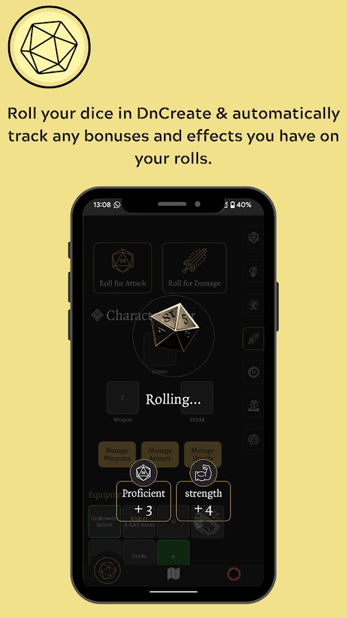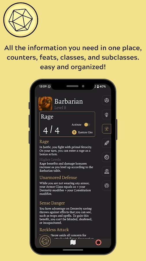 Отправляйтесь в эпические приключения с DnCreate, полным и мощным приложением, разработанным для улучшения вашего опыта Dungeons and Dragons. От создания персонажа до совместных квестов и не только, DnCreate предлагает простую и интуитивно понятную платформу для вас, ваших друзей и вашего DM, чтобы погрузиться в мир фэнтези.