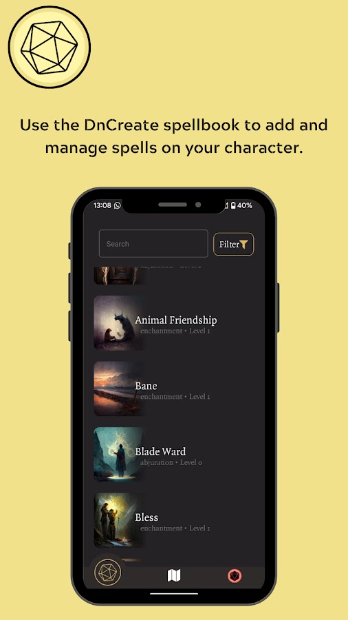 DnCreate позволяет вам выйти за рамки основных правил. Создавайте собственные расы, подклассы, заклинания и предметы, используя встроенные движки приложения. Исследуйте свое воображение и делитесь своими творениями с сообществом DnCreate, расширяя возможности своей игры с помощью захватывающего домашнего контента.