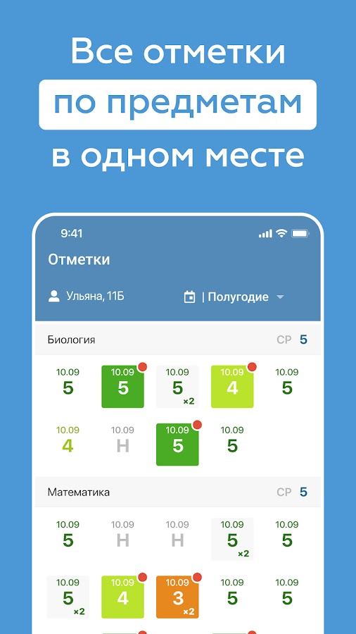 Приложение позволяет получить доступ к просмотру дневника с информацией о полученных оценках, комментариях к ним и выданных домашних заданиях. Возможно просмотреть текущие оценки за учебный период с расчетом среднего балла по предмету, результаты промежуточной и итоговой аттестации учащегося, а также расписание уроков с указанием кабинета и учителя.