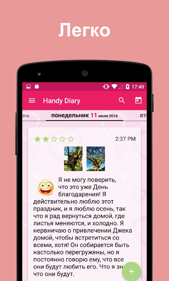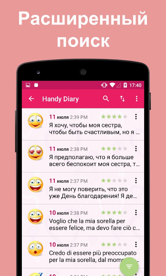 — Десятки смайликов доступны в Handy Diary