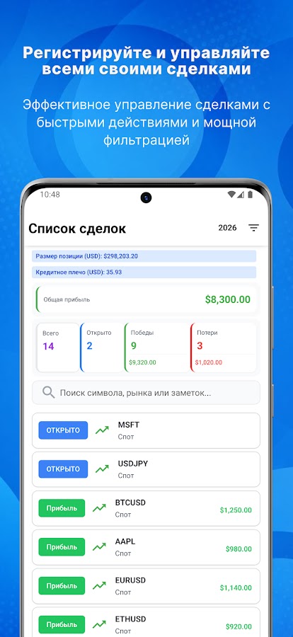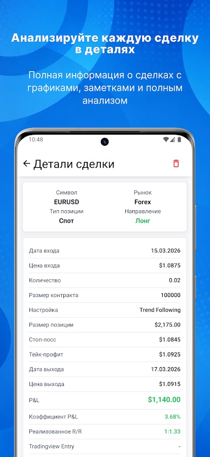Легко записывайте ключевую информацию о сделке, такую как цены входа/выхода, размер позиции, обоснование сделки и скриншоты.