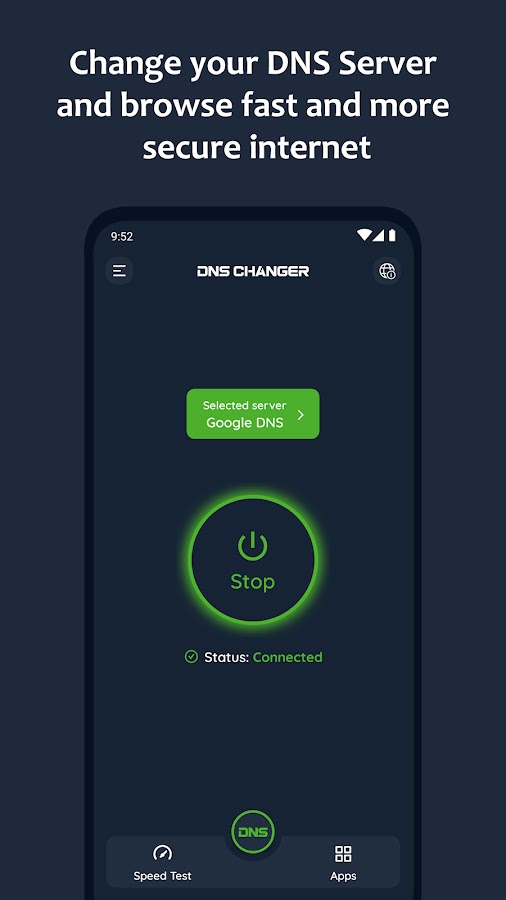 DNS Changer изменяет DNS-адрес вашего устройства, не влияя на скорость вашего соединения, и помогает поддерживать быстрый, безопасный и конфиденциальный просмотр веб-страниц. Он также позволяет вам получать доступ к веб-сайтам, заблокированным вашим интернет-провайдером, и может ускорить ваше интернет-соединение и улучшить игровой процесс в Интернете за счет сокращения времени задержки пинга, что обеспечивает более быстрый ответ.