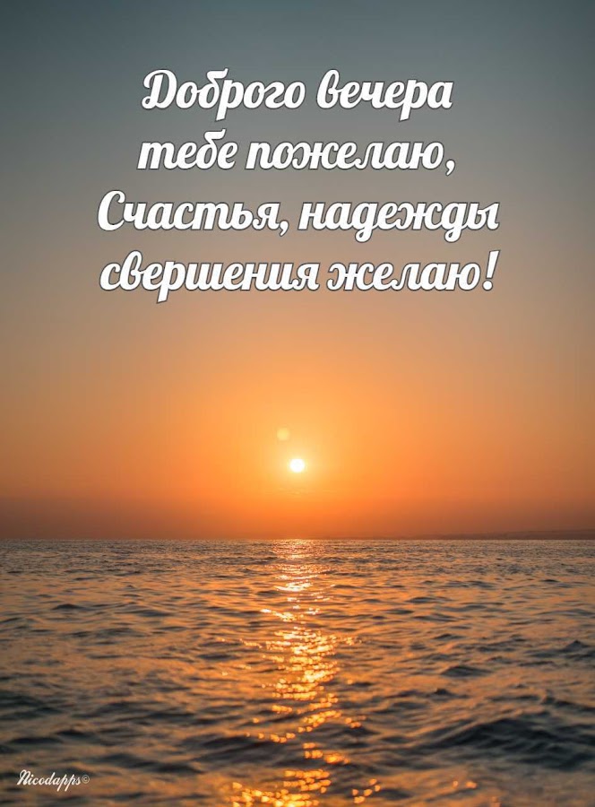 Вечер – это такое время суток, которое призвано отделить суетливость дня от сонного спокойствия ночи. Люди воспринимают его по-разному, в зависимости от образа жизни. Воображение одних при упоминании вечера рисует картинки активного отдыха в ресторане, клубе или театре. Другие – представляют свежую постель, пожелание доброй ночи и постепенный отход ко сну. Но и те и другие с радостью примут пожелание доброго вечера, если оно будет искренним и исходящим от небезразличного человека.