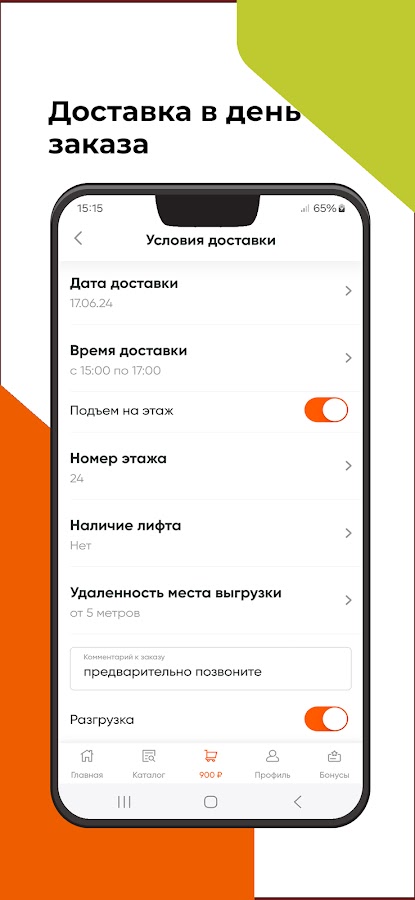 • Возможность заказать доставку с разгрузкой и подъемом на этаж