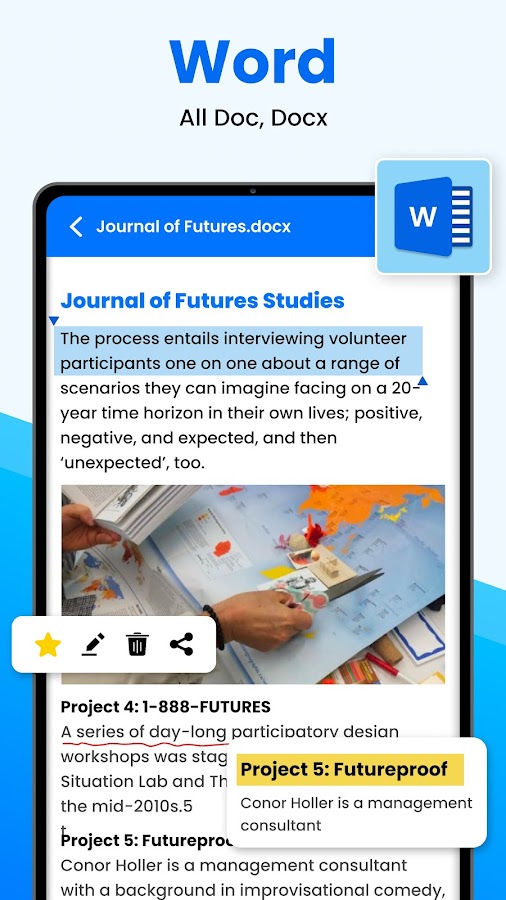 Приложение Docx Viewer — профессиональное приложение. Он быстрый, мощный и простой в использовании. Doc Opener поможет вам работать более блестяще.