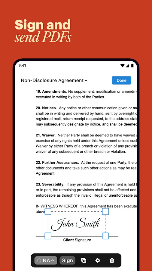 Превратите свой смартфон в приложение для электронной подписи, чтобы ваш бизнес мог работать где угодно. Собирайте юридически обязательные электронные подписи прямо со своего смартфона. Добавляйте получателей, назначайте поля, которые им необходимо заполнить, и позволяйте им подписывать PDF-файлы с любого устройства сразу или в определенном порядке. Когда каждый подписывающий документ завершит свою часть работы, вы получите мгновенные push-уведомления и уведомления по электронной почте, так что вы не пропустите ни одной детали.