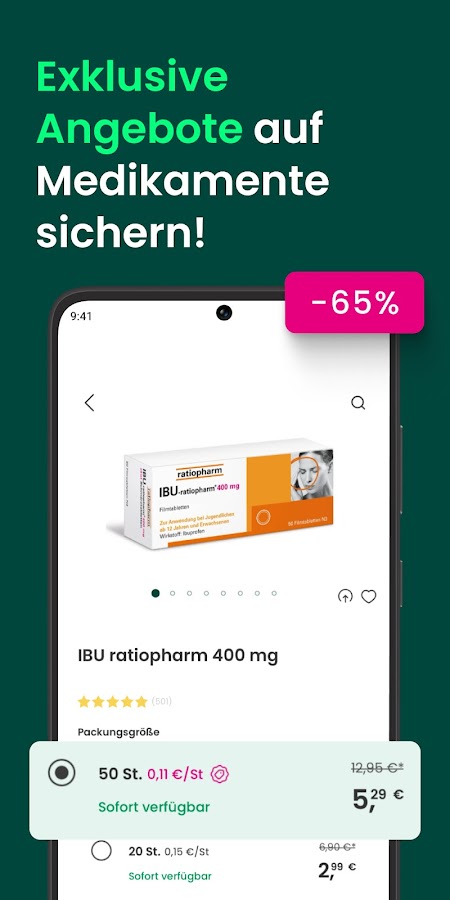 В приложении DocMorris вы можете воспользоваться многочисленными эксклюзивными предложениями, такими как скидки на отдельные товары и категории. Push-уведомления мгновенно информируют вас о текущих специальных предложениях и скидках, действующих ограниченное время. Таким образом, вы никогда не пропустите привлекательные акции и всегда сможете воспользоваться лучшими предложениями.
