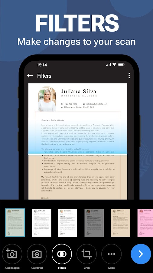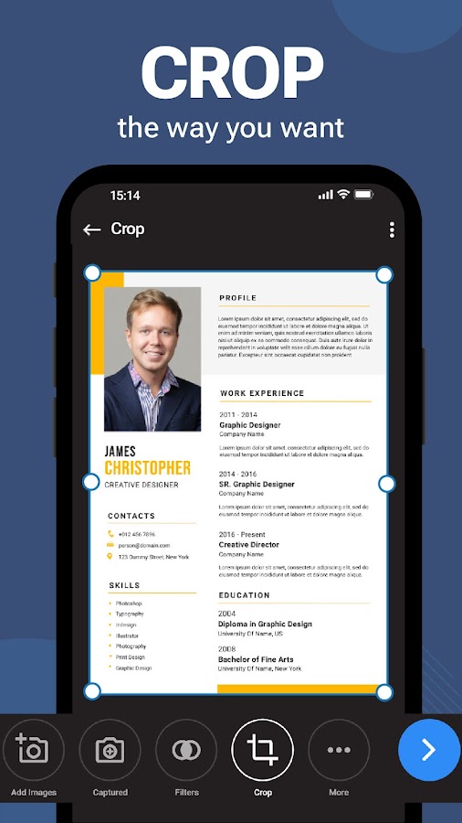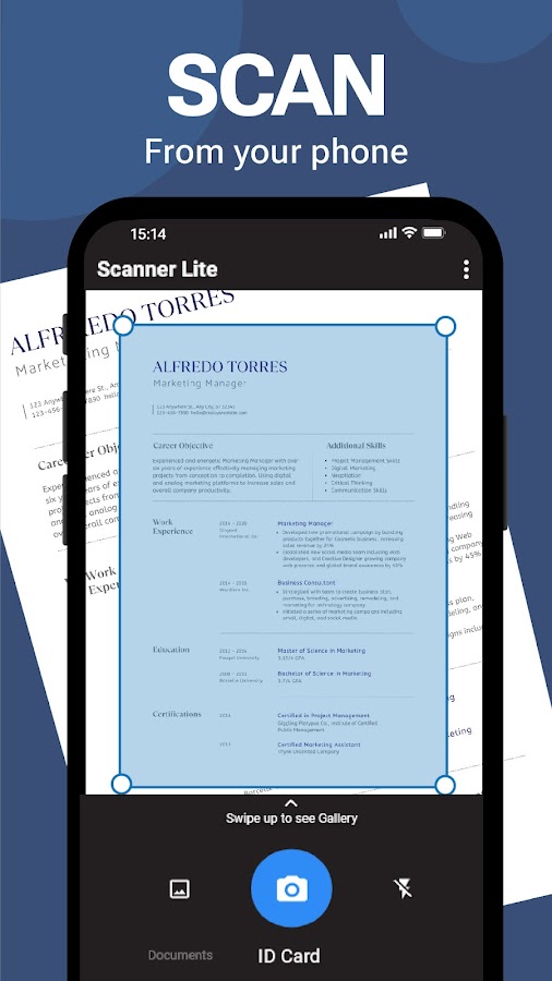 Быстрое сканирование документов. Мгновенно сканируйте документы, квитанции, счета и многое другое с помощью камеры вашего устройства. Наслаждайтесь быстрым и точным сканированием с автоматическим определением границ.