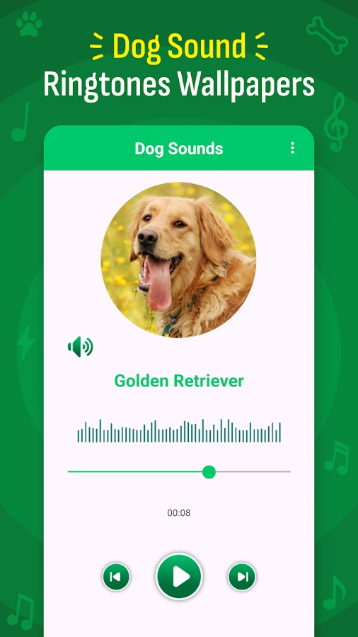 Приложение «Звуки собак»: звуки и рингтоны для лая собак!Принесите радость собак на свой телефон с помощью приложения «Звуки собак»: Обои для собак! Это приложение идеально подходит для любителей животных, которые хотят персонализировать свои устройства с помощью звуков k9 и потрясающих обоев. Если вы ищете собачьи звуки, которые можно установить в качестве мелодии звонка, или очаровательные обои, которые украсят ваш экран, в этом приложении есть все. Превратите свой телефон в праздник лучшего друга человека с помощью высококачественных звуков и ярких обоев, которые выделят ваше устройство.