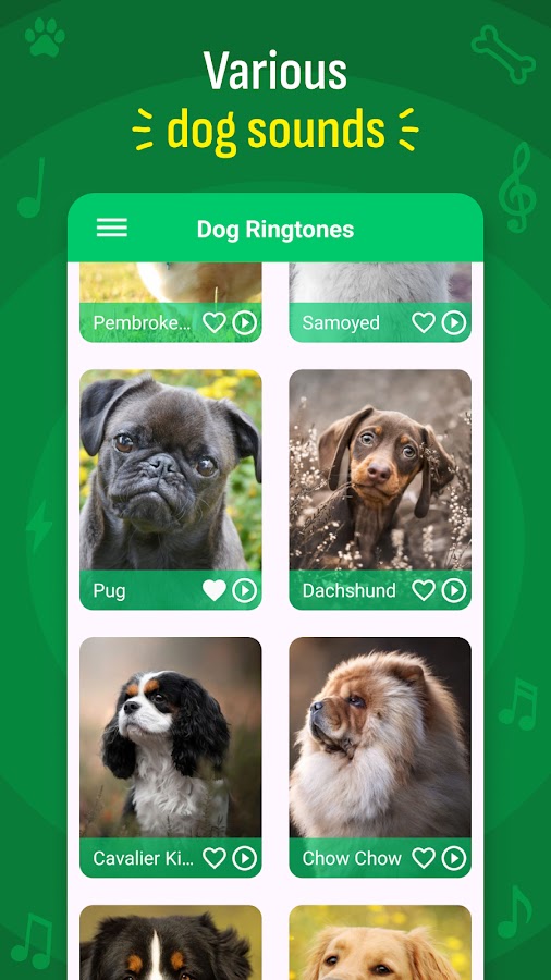 🐶Пользовательские мелодии звонка: установите звуки лая в качестве мелодий звонка, будильника или уведомлений;