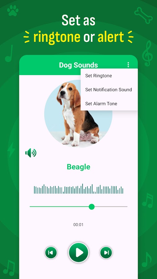 Это приложение предлагает широкий спектр собачьих звуков, от лая до игривых щенячьих звуков, которые идеально подходят для рингтонов, сигналов будильника или уведомлений. Начните свой день с улыбки, установив лай в качестве сигнала будильника!