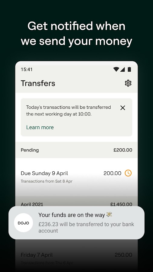 Загрузите приложение Dojo для бизнеса и получайте мгновенное представление о своих повседневных бизнес-платежах — от полной разбивки транзакций до мгновенных уведомлений о переводах. Получите доступ ко всему этому в режиме реального времени, чтобы вы всегда были в курсе. Кроме того, соблюдение требований PCI не составляет труда. Это займет всего несколько простых шагов в приложении.