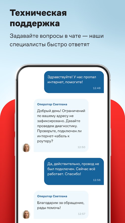 • Получайте уведомления о технических работах, обновлениях и оплате.