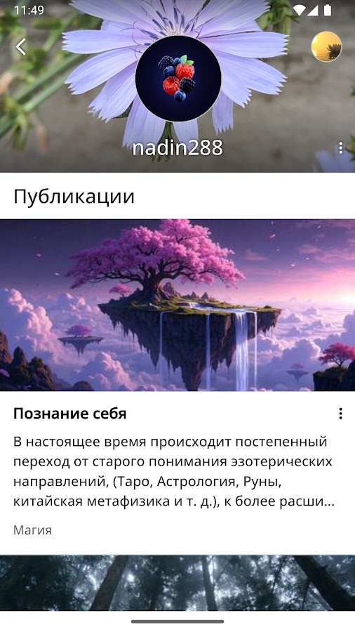 Приложение позволяет публиковать ваши творческие работы в шести тематических разделах: Стихи, Проза, Религия, Магия, Психология и Журнал.