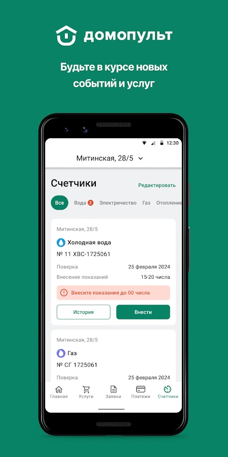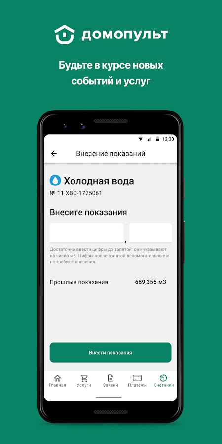 3. Передавать показания cчётчиков воды прямо с мобильного телефона;