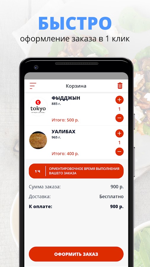 Скачивайте наше приложение, оформляйте заказ и наслаждайтесь любимой едой, где бы Вы ни были! Приятного аппетита!