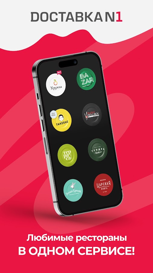 Любимые рестораны в одном приложении! Кружка, Такеши, Sushi RollBox, Тундра, Терраса, Царская охота, BAZAR и Белый Кролик.