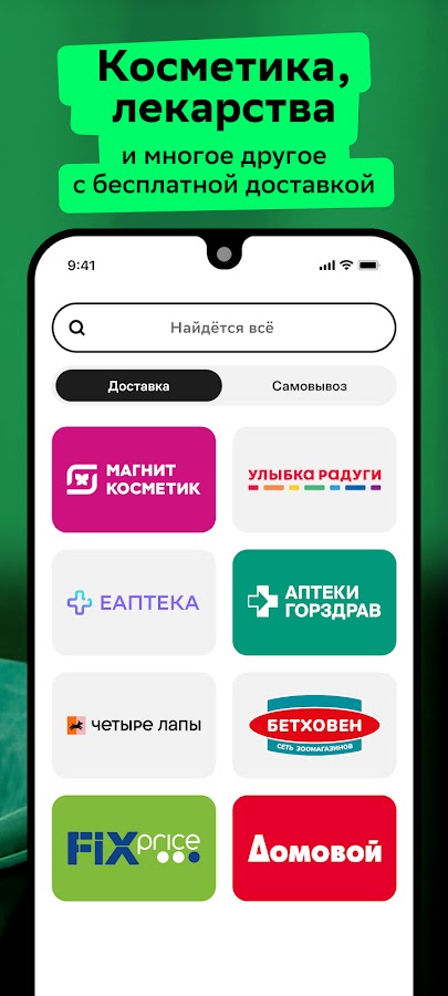 С мобильным приложением покупать станет ещё проще: продукты на дом, заказывай лекарства из аптек, покупай в магазинах косметики и подарков, выбирай товары для детей, электронику, бытовую технику, зоотовары и даже лицензионные игры.