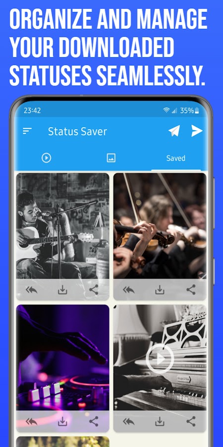 С легкостью просматривайте сохраненные статусы в интуитивно понятном интерфейсе приложения.