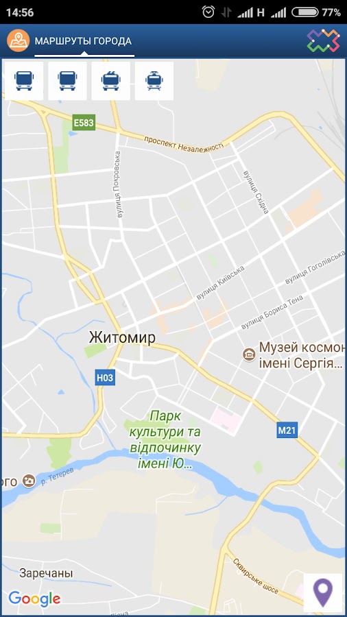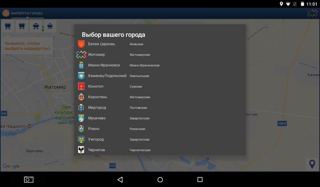 Приложение будет полезно всем пользователям общественного транспорта в ряде украинских городов: Бердичев, Белая Церковь, Вараш, Дрогобыч, Дубно, Житомир, Закарпатье, Звягель, Ивано-Франковск, Каменец-Подольский, Канев, Каменское, Ковель, Коломыя, Коростень, Краматорск, Львов, Мукачево, Александрия, Ровно, Славянск , Ужгород, Хмельницкий, Черкассы, Чернигов, Чортков.