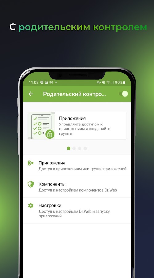 Родительский контроль управляет доступом к вашим приложениям и настройкам Dr.Web.