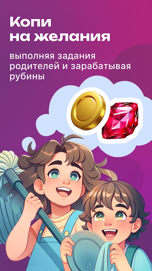 Получай вознаграждение в виде дракончиков за выполнение домашних дел! И меняй накопленные дракончики на свои желания! Покажи приложение родителям и пользуйтесь всей семьей!