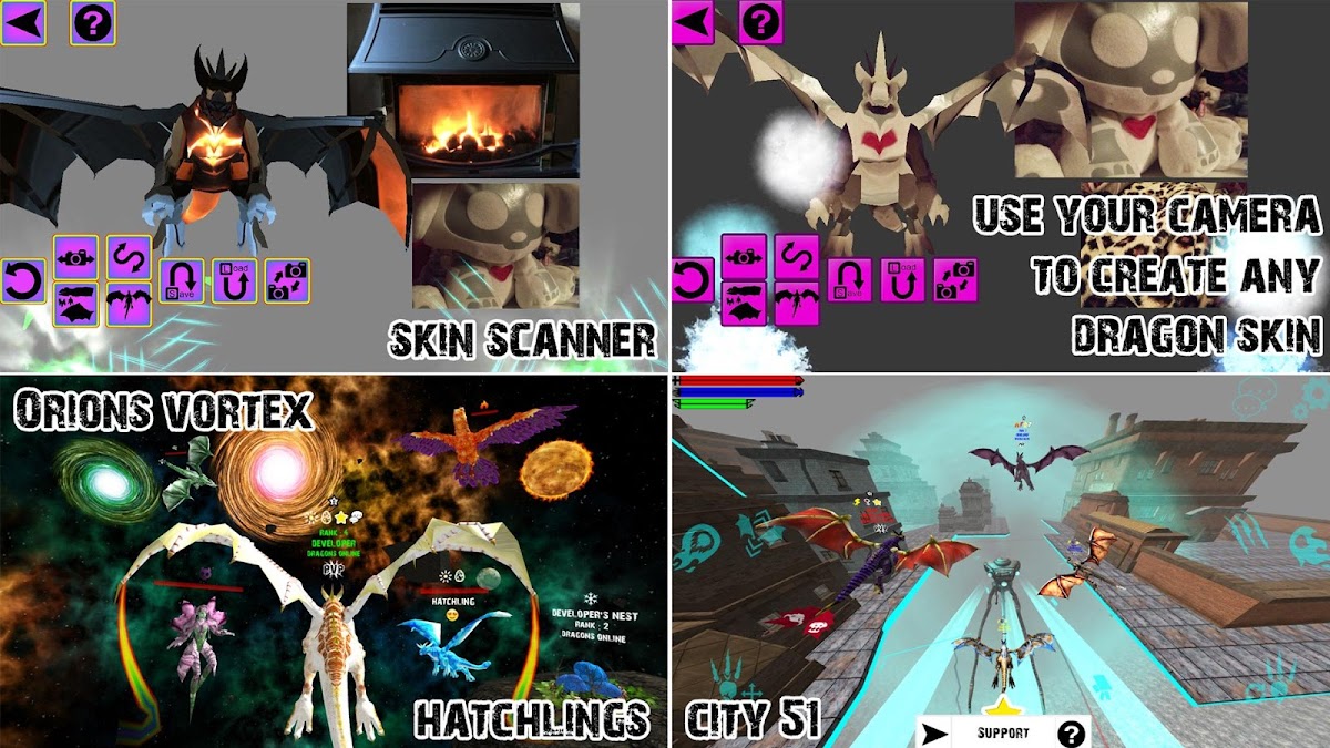 Создайте свой 3D-аватар, измените его хвост, следы, шляпы и цвета или используйте «Сканер кожи», чтобы создать собственные скины дракона!