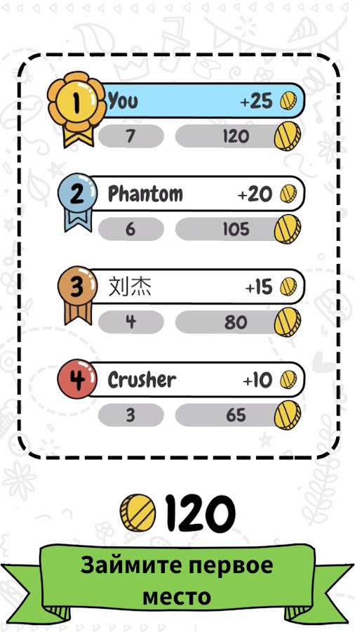 Вам нужно рисовать как можно быстрее, чтобы опередить соперников. У вас будет небольшое количество времени, за которое нужно нарисовать как можно больше объектов.