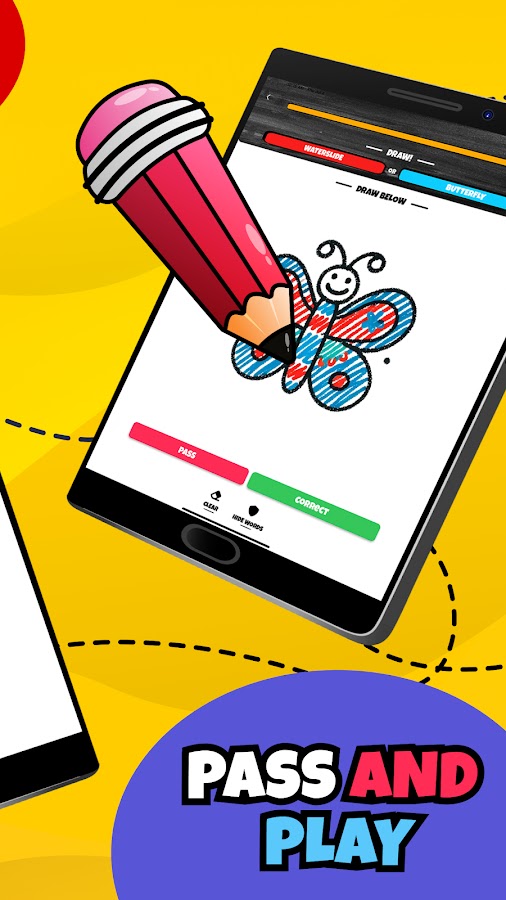 Веселье начинается здесь! Если настала ваша очередь, начинайте рисовать красивые картинки на тему предложенного слова. Если настала ваша очередь угадывать, делайте смешные предположения. Будьте осторожны!!! Чтобы выиграть раунд, вы должны первым угадать слово. Так что держитесь крепче и начинайте строить догадки!