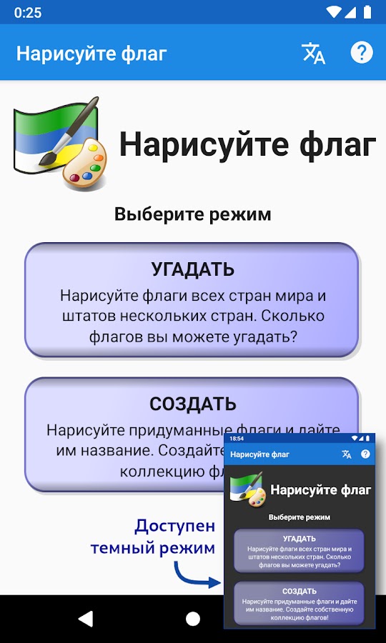 Это приложение является как викториной, так и создателем флагов или их редактором.