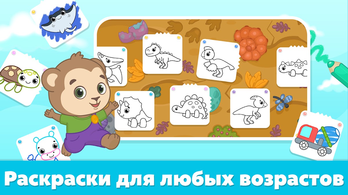 — Замечательные игры для детей со страницами для рисования на разные темы, включая животные, динозавры, машины, океан и многое другое.