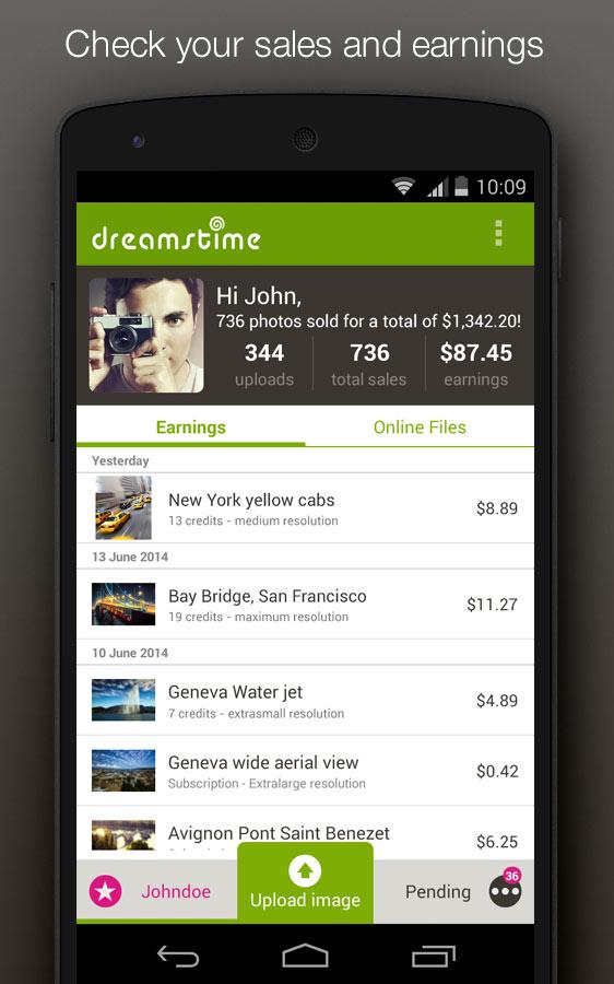 Companion также Dreamstime позволяет отслеживать текущие доходы и статистику изображения, а на ходу. Загрузить и подписаться на бесплатный аккаунт или зарегистрироваться в существующую учетную запись Dreamstime.